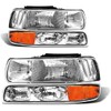 Headlight Assembly for 1999 2000 2001 2002 Chevy Silverado 1500 2500/1500HD 2500HD 3500/2000-2006 Tahoe/Suburban Chrome Housing Amber Reflector Pair