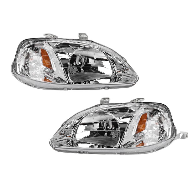 Parts Galaxy Headlight Assembly Set For 1999-2000 Honda Civic Left Right Halogen Composite