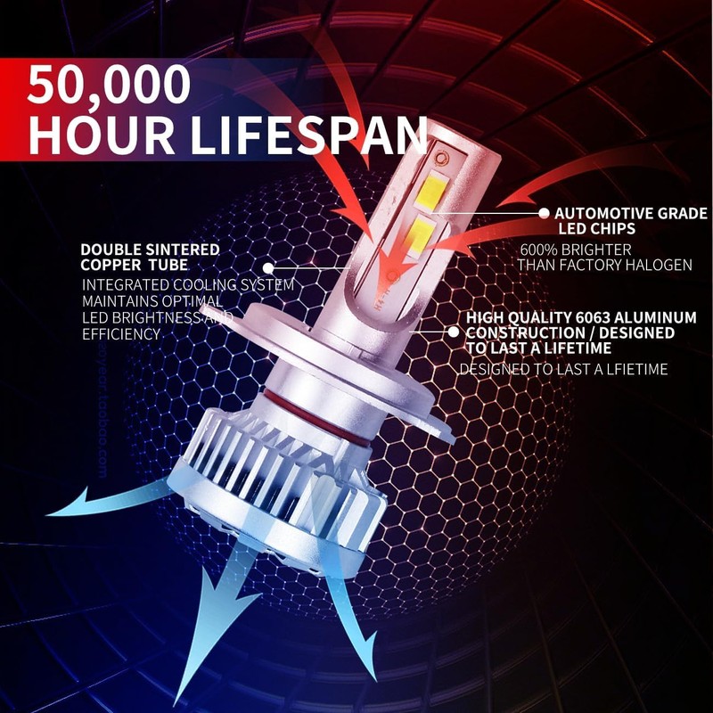 - 【600% Brighter Than Halogen】- Top Automotive-Grade chips with a REAL 22000LM per pair, 6000K color temp. Factory focused beam pattern design provides wider and farther lighting range which is 6 times brighter than your original halogen bulb. Made for your factory assembly.