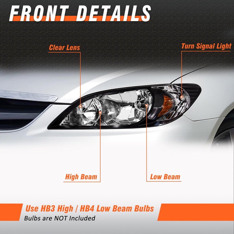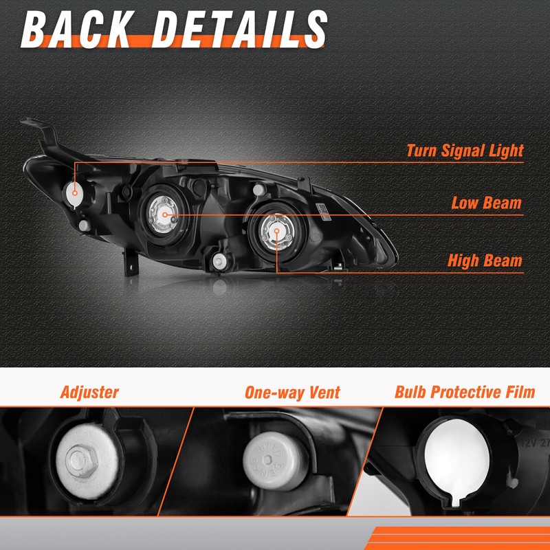 - Vehicle Compatibility: headlights assembly compatible with 2004-2005 Honda Civic 2 Door / 4 Door Black Housing Headlamp(Bulbs not included),HB4(W/O) / HB3(W/O) / 1157A(W/O),OEM#33151-S5A-A51/33101-S5A-A51.