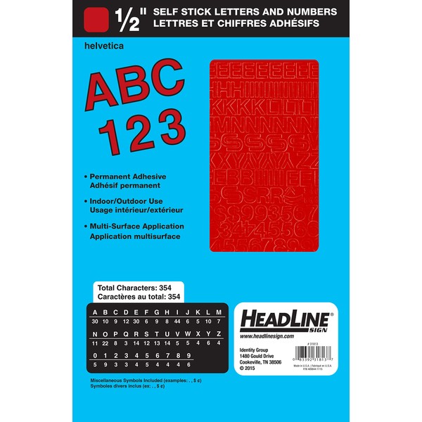 Headline Sign 31813 Stick-On Vinyl Letters and Numbers, Red, 1/2-Inch