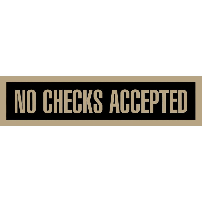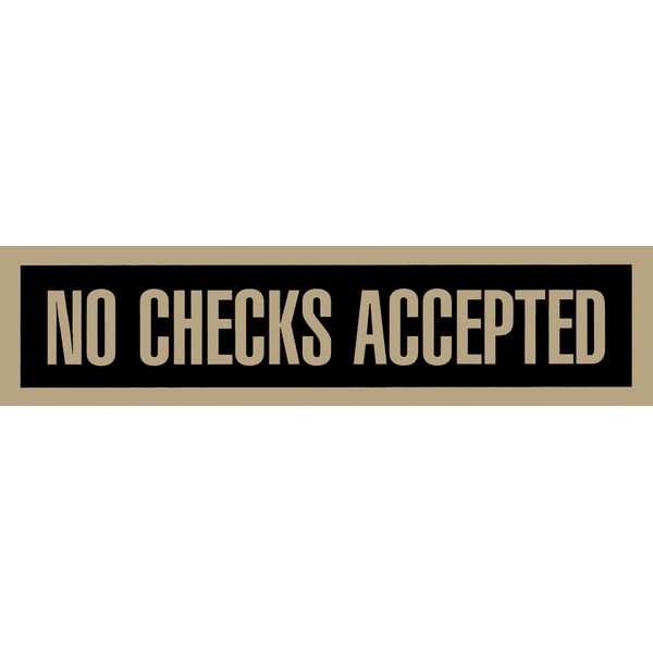 - Self-Stick No Checks Accepted sign ^Peel-and-stick decal ^Durable Mylar material ^Perfect for doors and windows ^2 inches x 8 inches