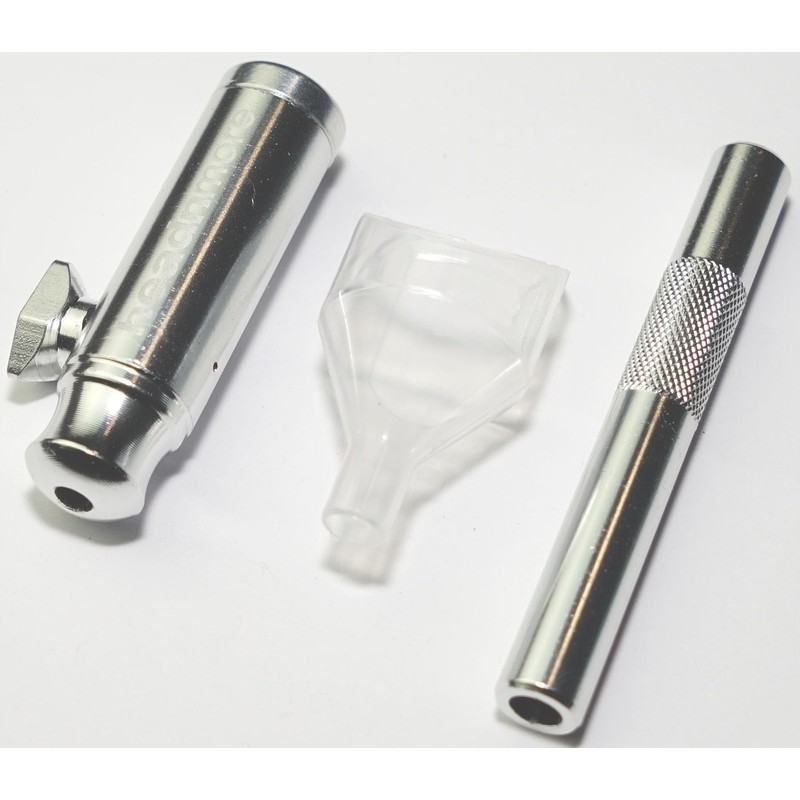 HEADNMORE® Snuff Set #25 HM5 Dispenser Silver + Funnel + Tube in Silver - 3 Pieces