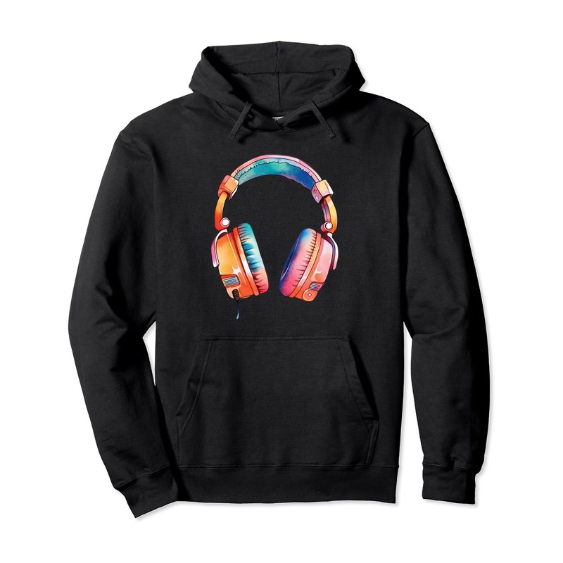 Headphones Music DJ Aesthetic Retro Colorful Headphone Art Pullover Hoodie