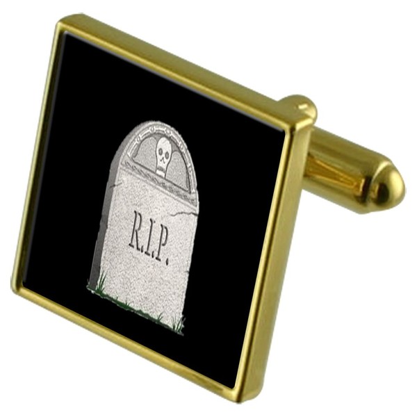 Headstone Coffin Gold-tone Cufflinks Crystal Tie Clip Gift Set