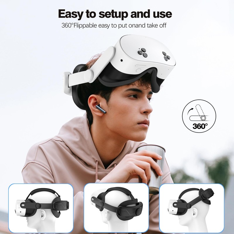- 【360°Flip Design for Quest 3S Head Strap】The 360°flip hinge makes it easy to flip the VR set over, allowing you to access the real world without having to remove the entire headband. Very user-friendly for VR game developers and glasses wearers.