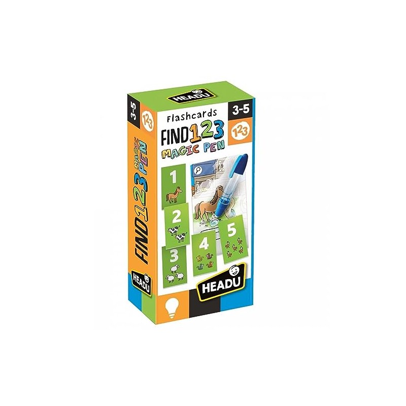 Headu MU27835 Flashcards Find 123 Magic Pen Children's Game for Counting Learning to Count Educational Game Recommended for Boys and Girls Aged 3 to 5 Years, Multi-Colour