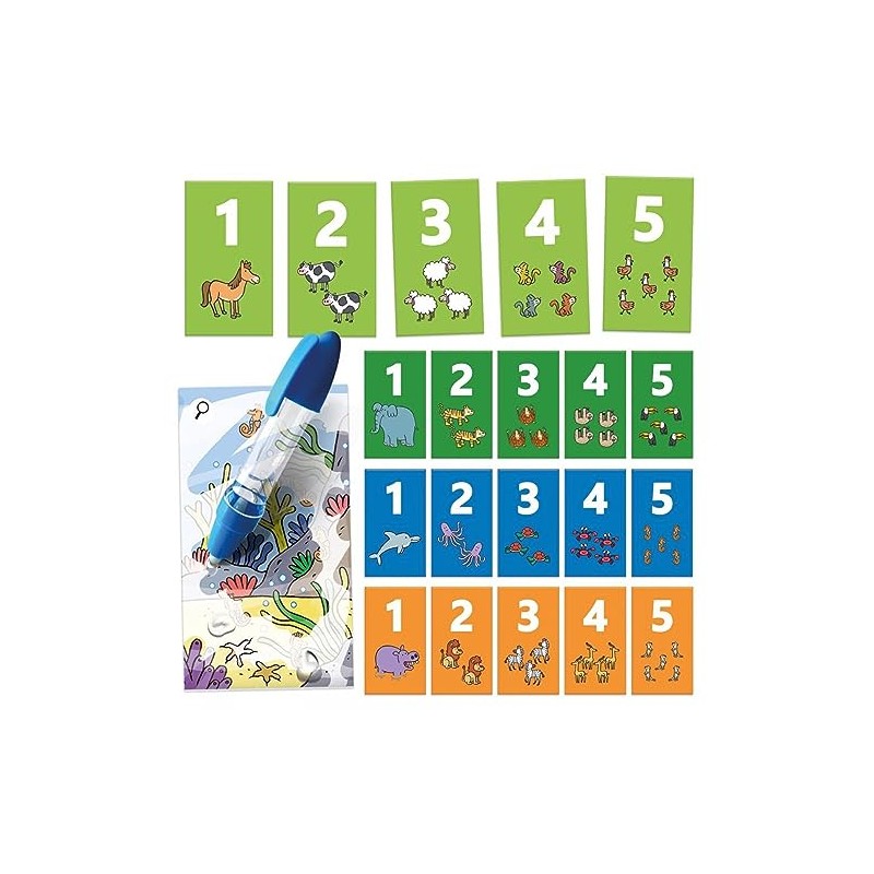 - This educational toy contains 20 double-sided cards; 1 water pen