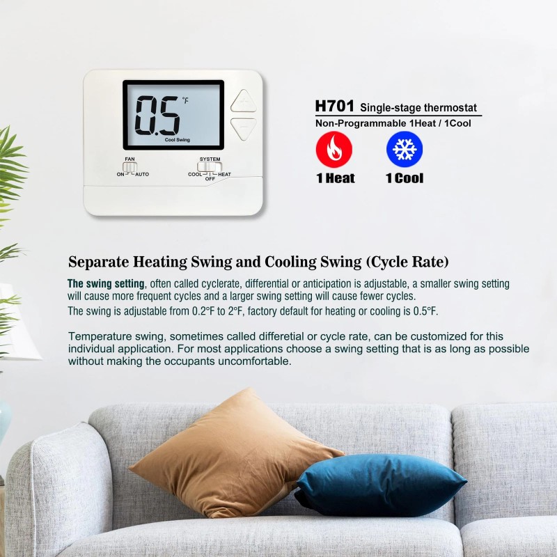 Separate Heating and Cooling Swing (Cycle Rate). Which will Either Prolong or Shorten the Temperature Open Time. Make Comfortable Temperatures to Teduce Energy Usage, Savings on Annual Heating and Cooling Costs.
