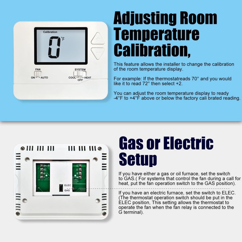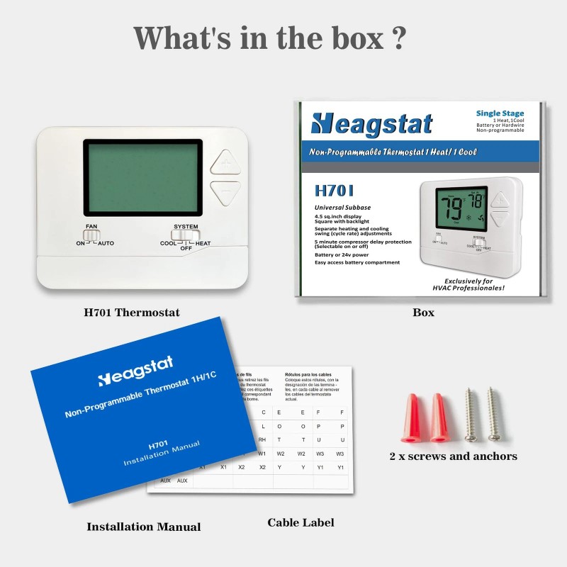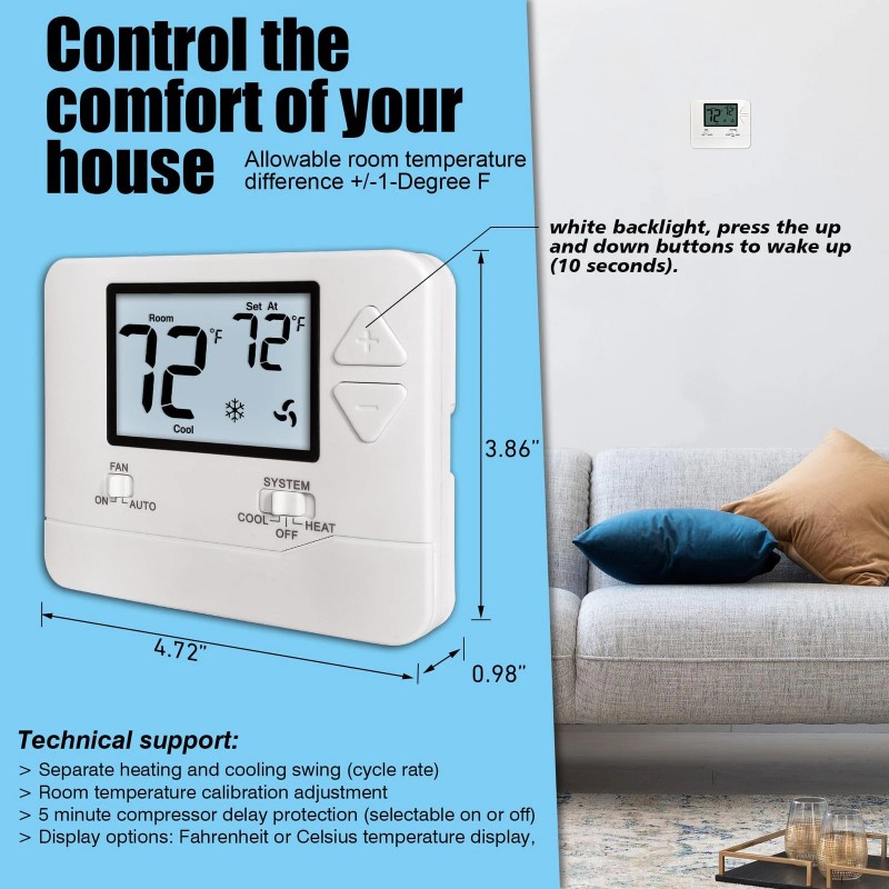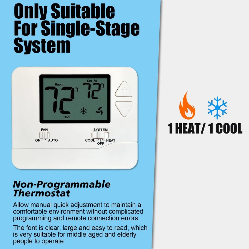 Simple Thermostat: Heagstat non-programmable thermostats for house conventional single-stage systems, up to 1 heat/1 cool to control the temperature in a room.