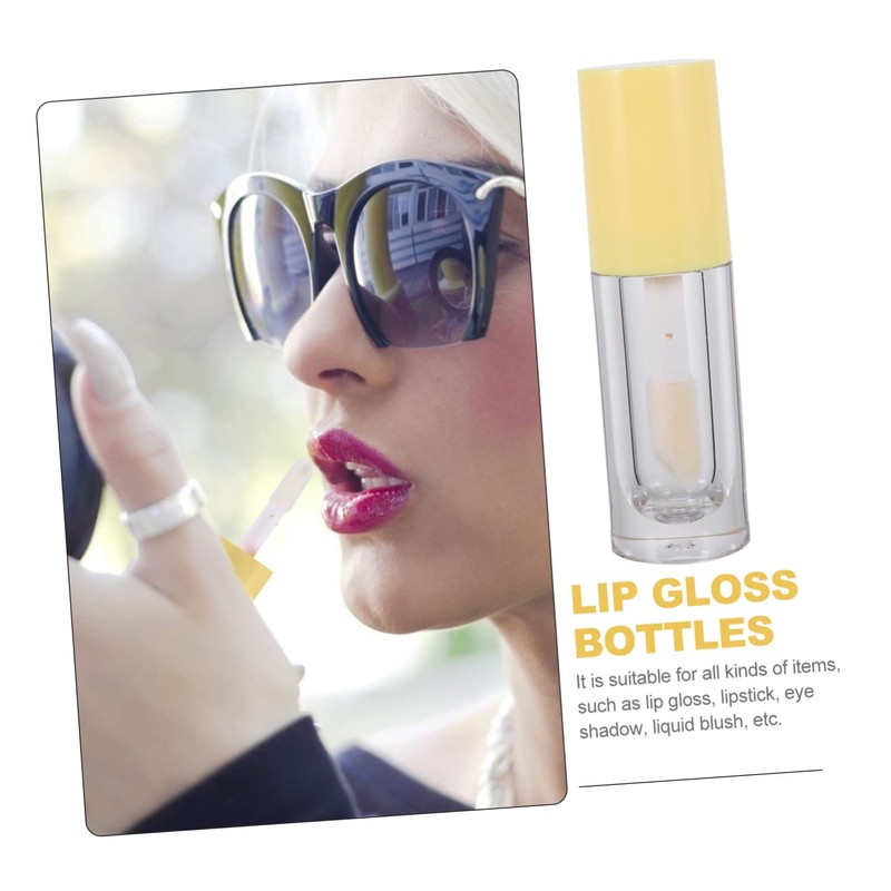 Healeved 10pcs Lip Gloss Bottle Eyelash Container Lip Gloss Base Bucket Product Tubes Lip Gloss Making Kit Adults Clear Container Wand Refillable Black Container Tubs Lip Oil Yellow Plastic