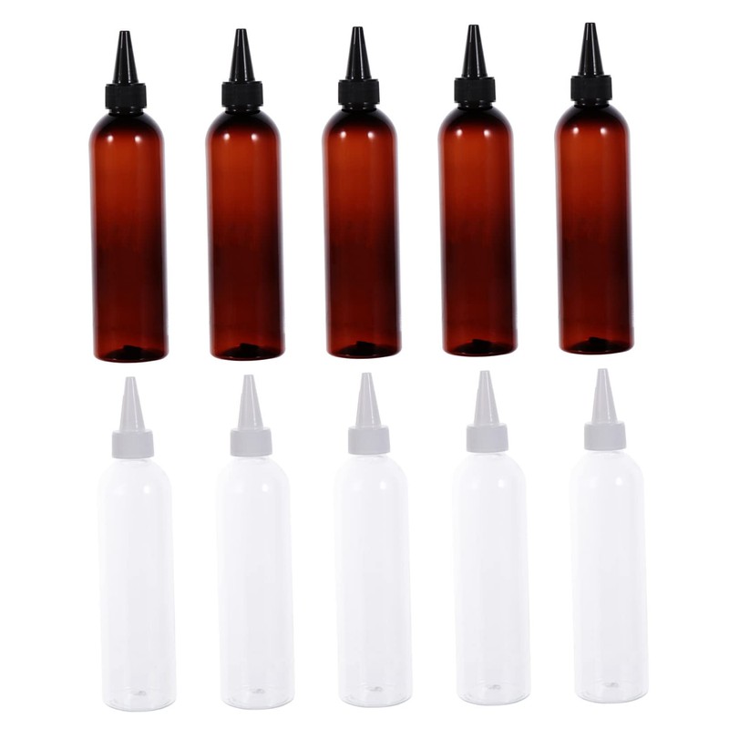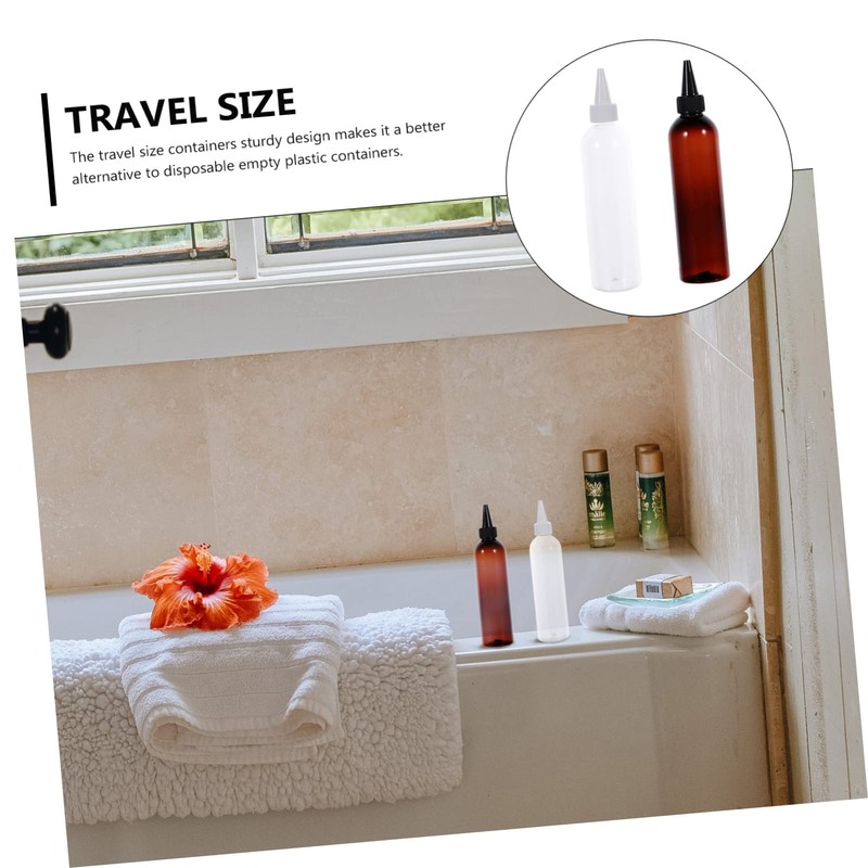 -Color: Transparent bottle with white lid, brown bottle with black lid Travel Dispenser Bottle