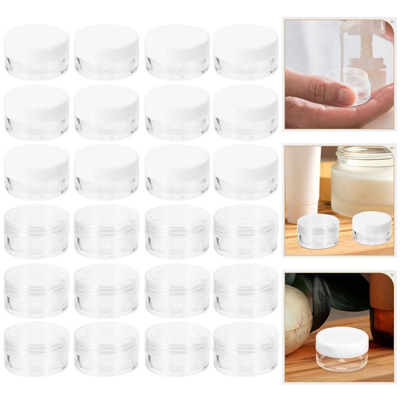 Healeved 24pcs Refillable Face Cream Jars Cosmetic Containers Seal Lids for Creams Eye Samples Easy to Refill Leak Design