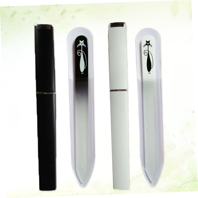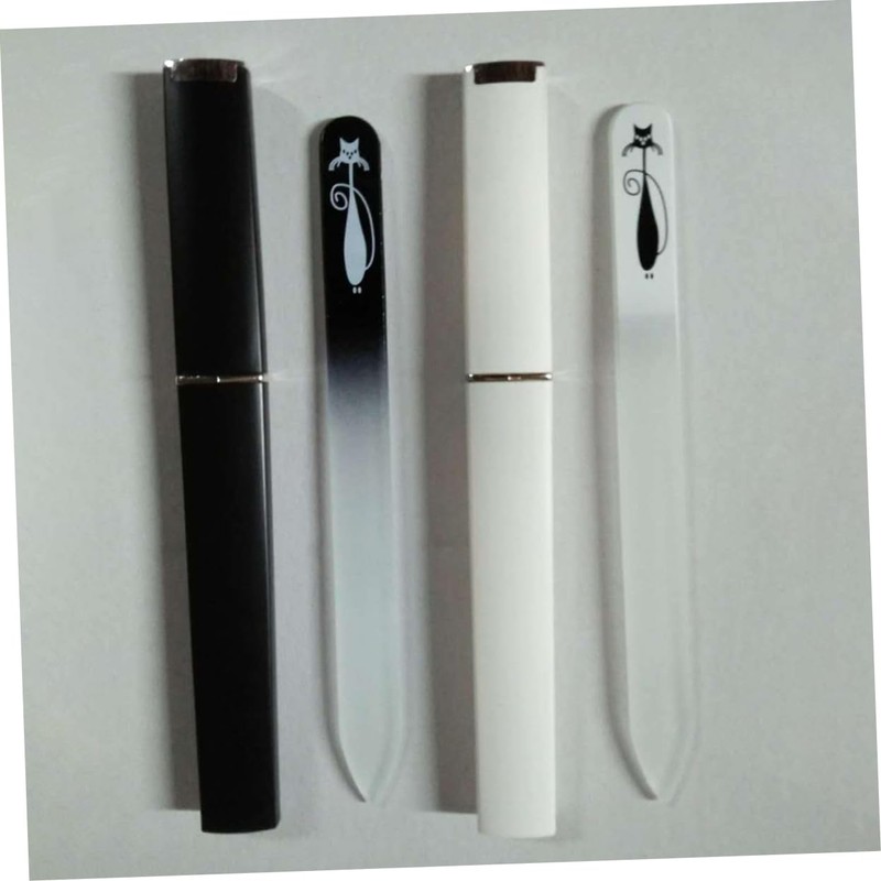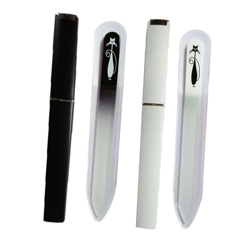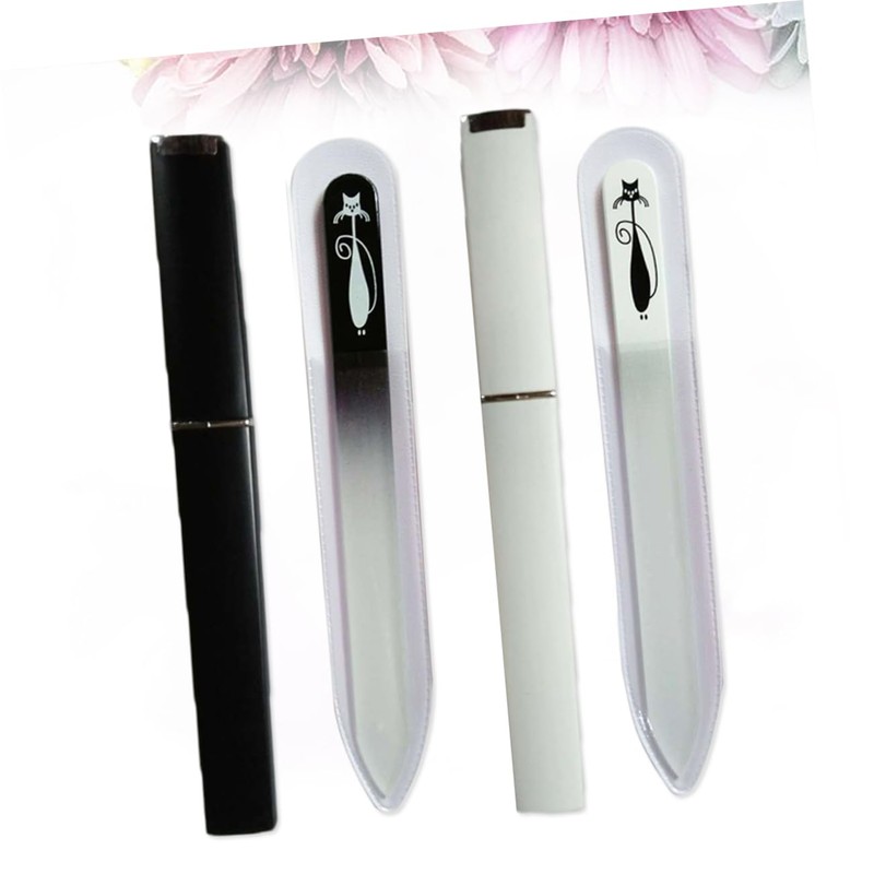 Healeved 2pcs Double-sided Printing Glass Nail Files Manicure Tools for Polishing and Buffing Natural and False Nails Black White
