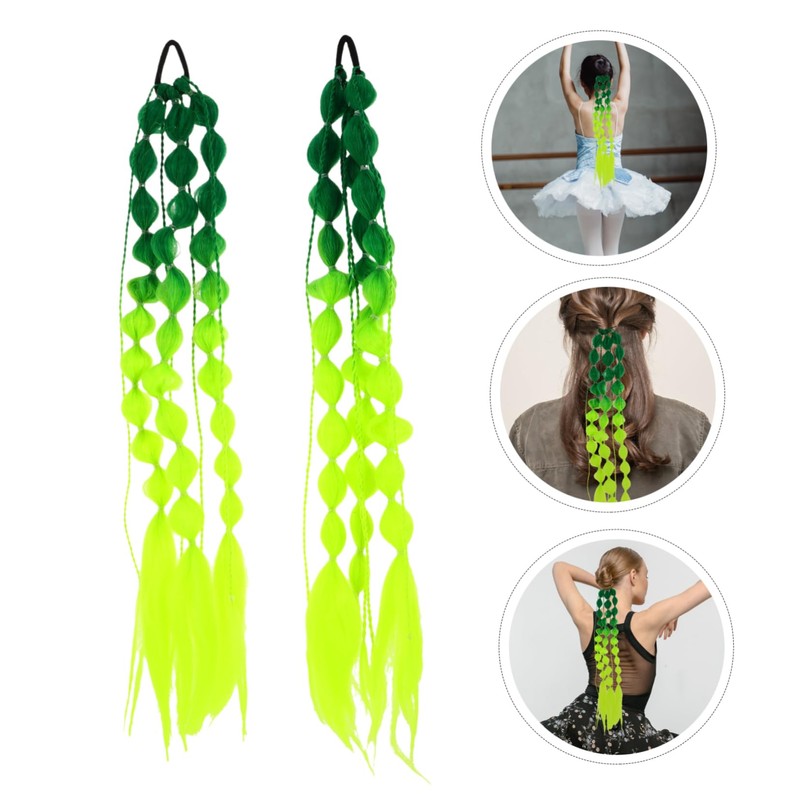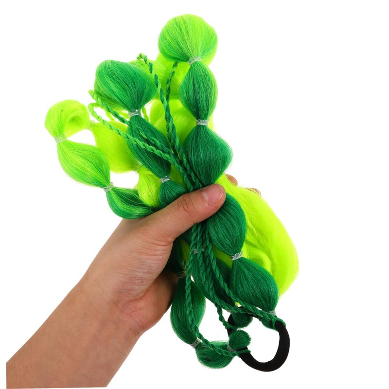 Healeved 2pcs Green Hair Extensions Bubble Ponytail Wig Braided Ponytail Extensions for Women Girls
