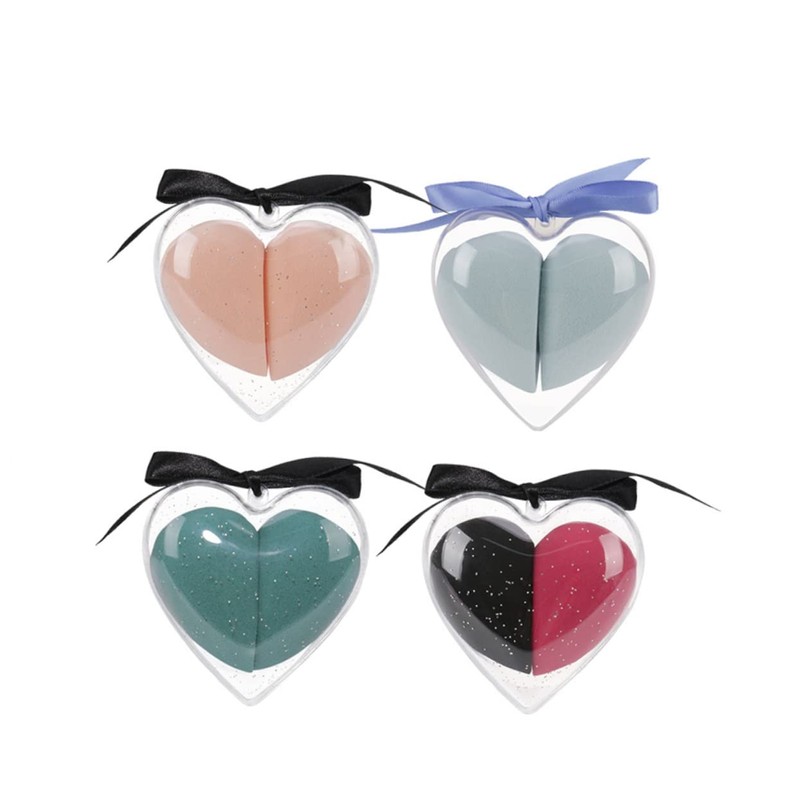 Healeved 2pcs Heart Shape Makeup Sponges for Wet and Dry Use Soft Flocking Beauty Eggs for Blending Foundation and Reddish Black