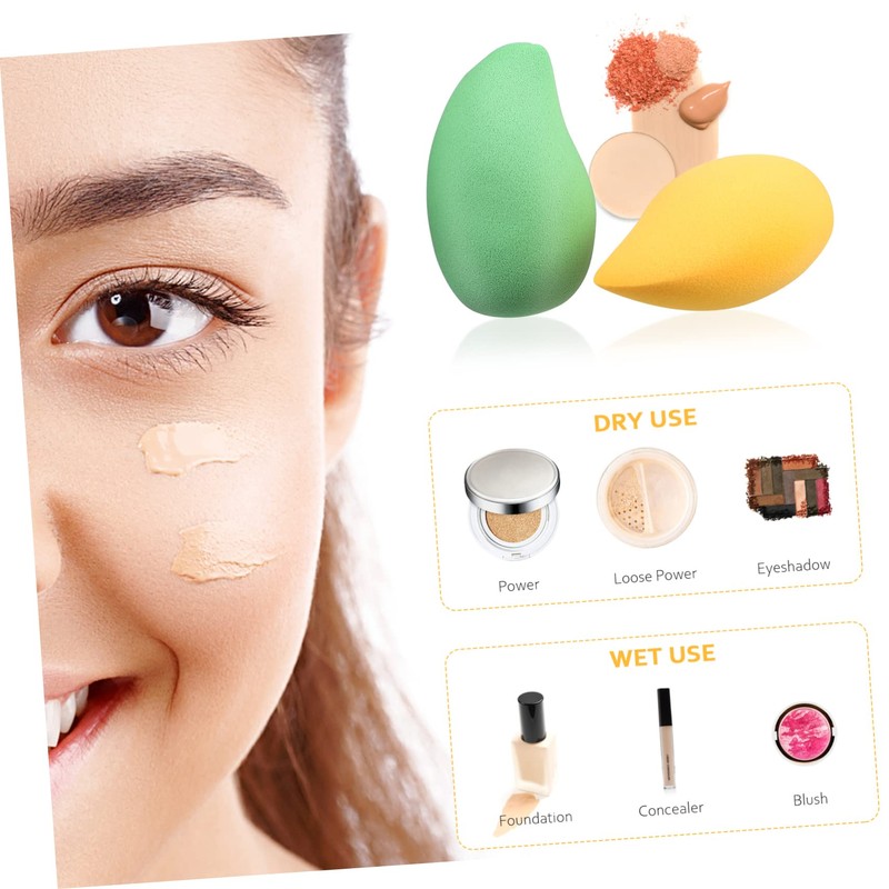 - Women beauty powder puff-- creative shape: the lovely mango shape and delicate colors are very unique and can bring you a happier mood when applying makeup.