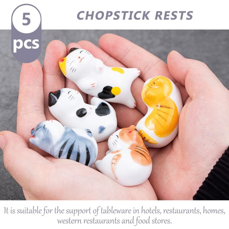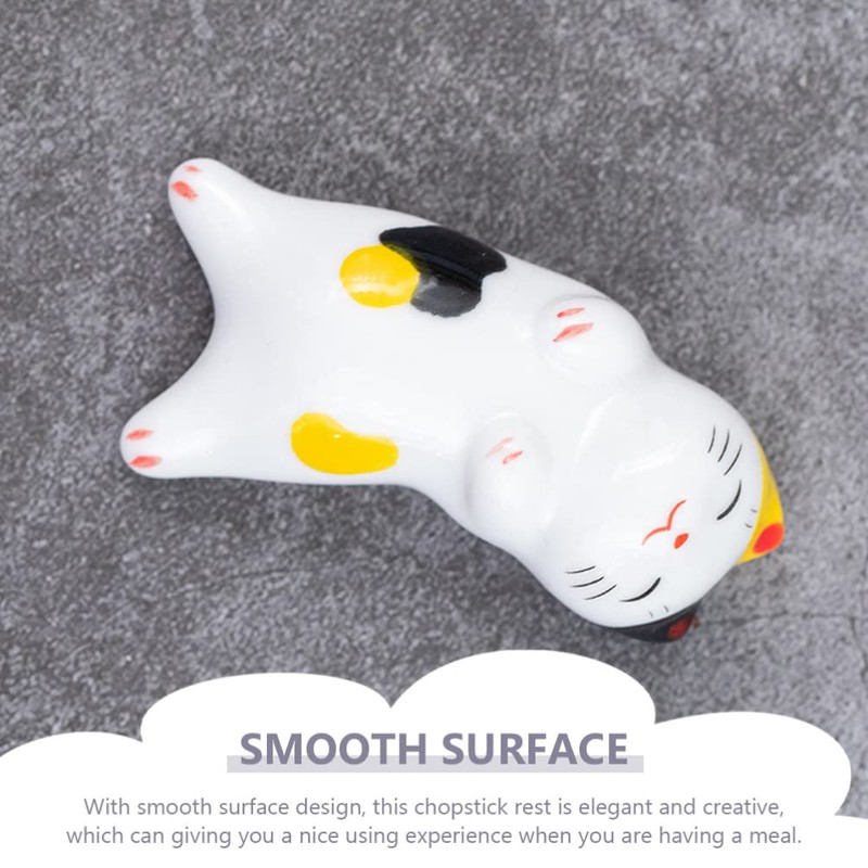Healeved 5pcs Ceramic Fortune Cat Chopstick Rests Creative Cutlery Organizer for Elegant Dining Stable Hold for Chopsticks Tableware Easy to Clean Portable Design