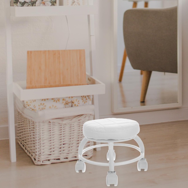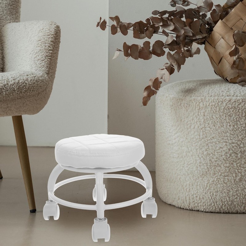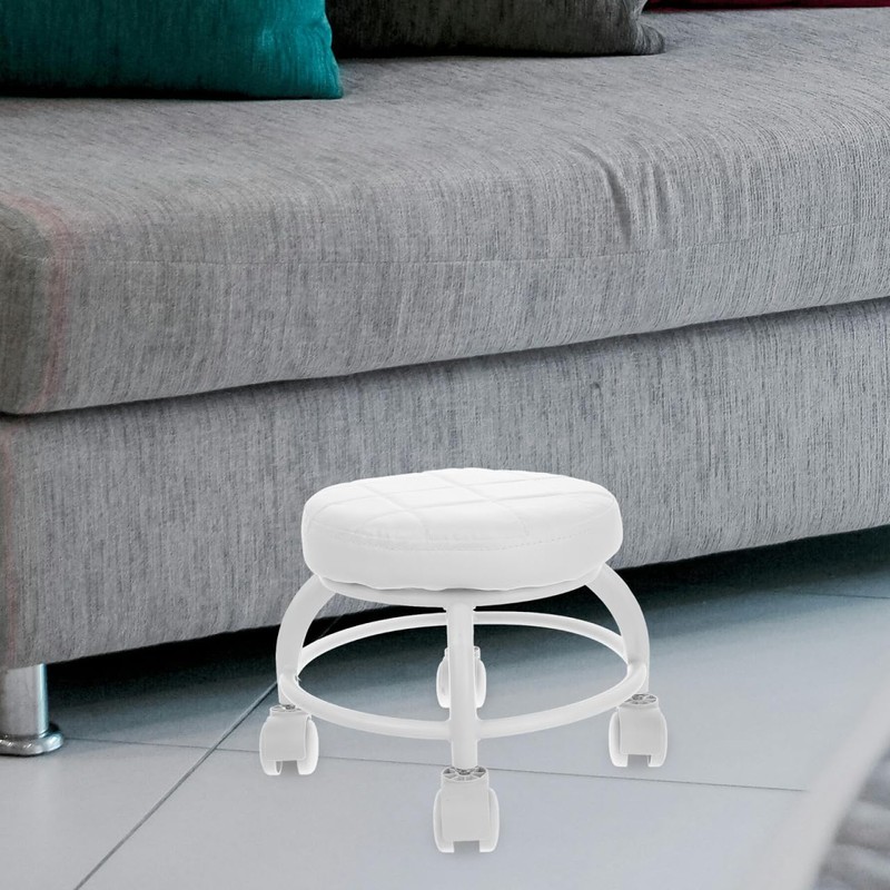 Healeved Low Rolling Stool with Wheels PU Leather Low Stool Modern Round Roller Seat for Manicure, Mechanic,Home Office