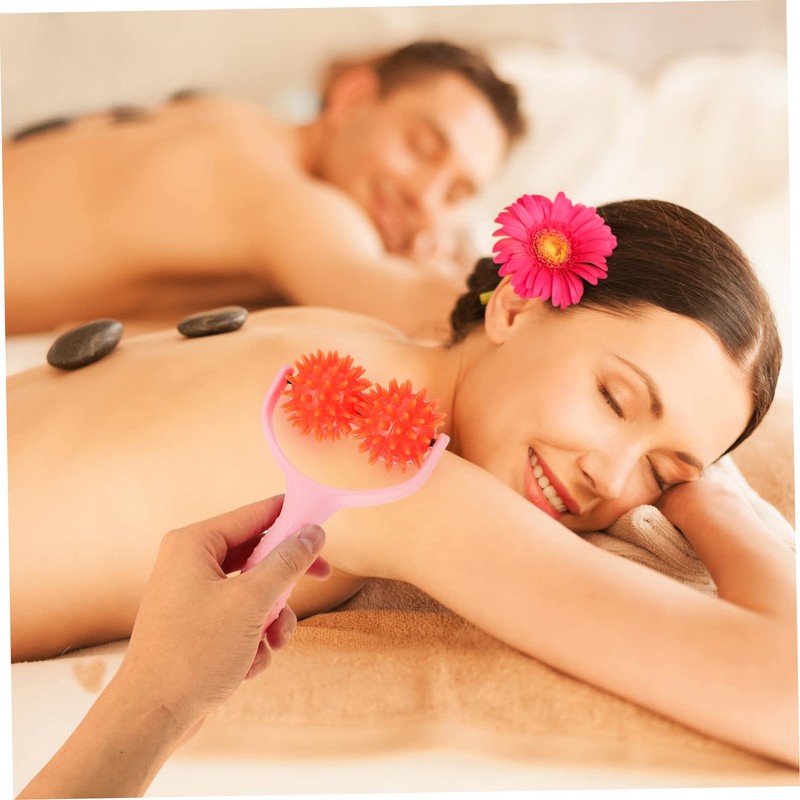 Healeved Massage Roller Neck Massagers Body Acupoint Massager Massage Roller with Handle Spiky Massage Roller Muscle Relaxer Trigger Point Back Massager Massage Roller Rod Pink Yoga Ball