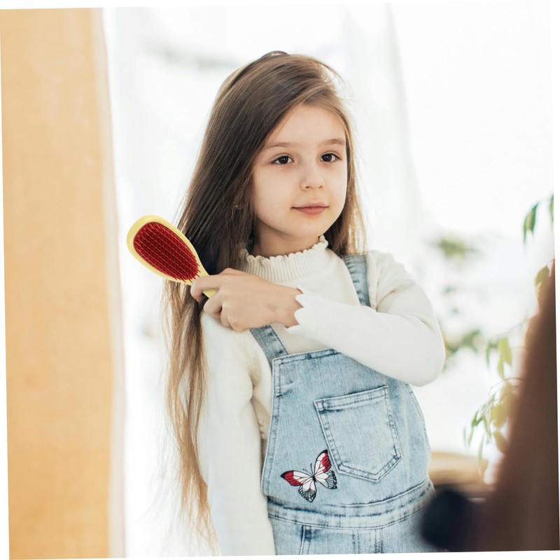 -Stylish color scheme: the yellow handle with pink and red teeth adds a stylish and unique look to your bath accessories hair shampoo brush.