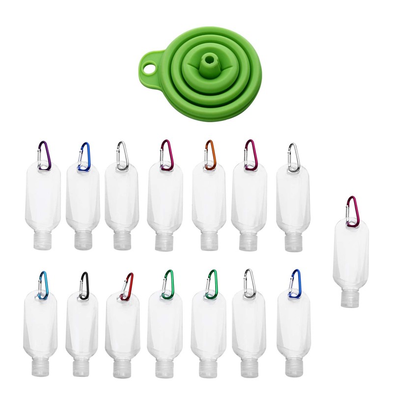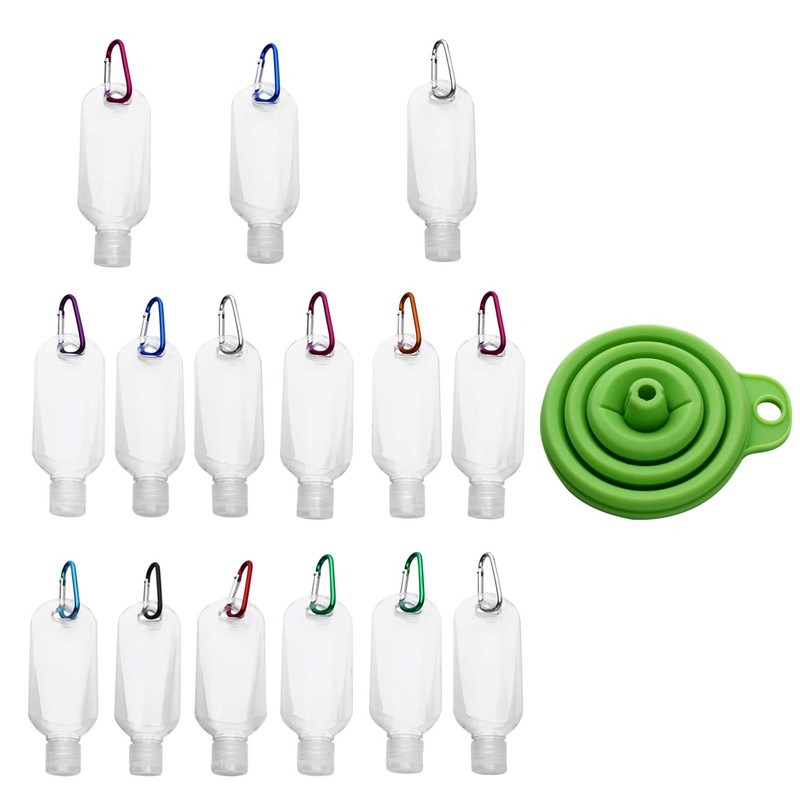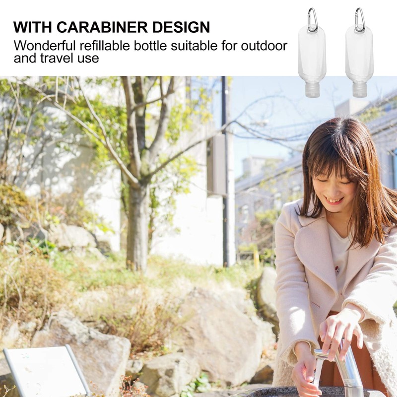 Healifty 16pcs Travel Plastic Clear Keychain Bottles 60ml Leakproof Empty Squeeze Container Flip Cap With Hook Carabiner for Cosmetics Toiletries Liquids