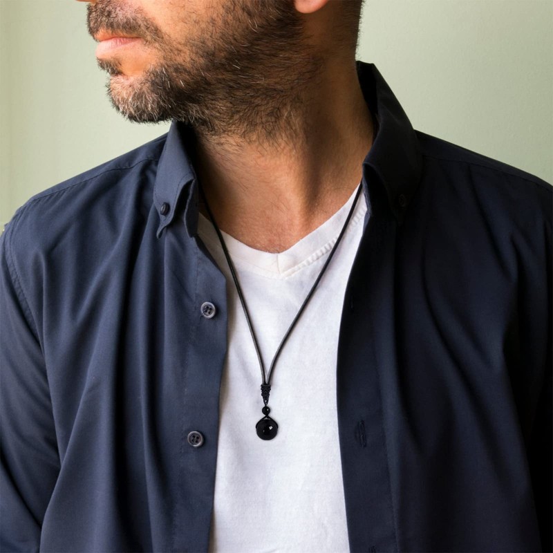 Healing Crystals Necklace for Men Tigers Eye Crystal Necklace Obsidian Protactoin Necklace for Boy Christmas Gifts (B: obsidian necklace)