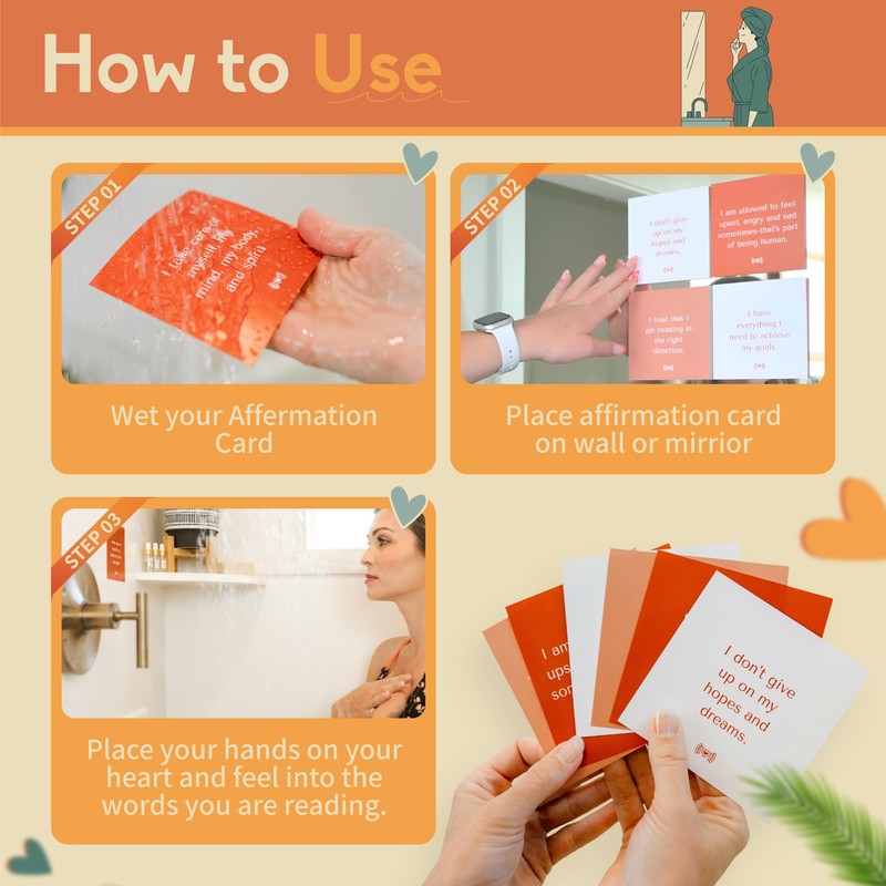 • Daily Self-Love: Stick these waterproof affirmation cards to your shower or mirror to inspire self-love and embrace body positivity every day.