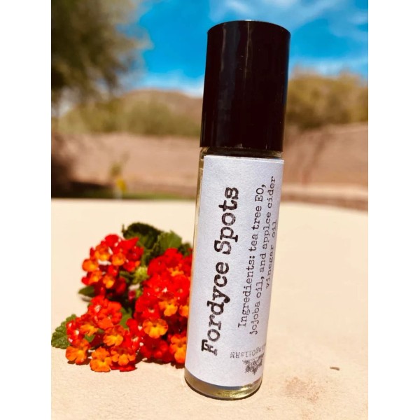 Fordyce Spots essential oil blend roller contains tea tree essential oil, jojoba and apple cider vinegar. This blend has been diluted appropriately with grapeseed oil for ADULT human topical use. If you would like something blended for a child please message me when ordering and I will dilute according to age.