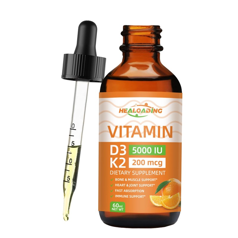 - and K2 SUPPLEMENTS: HEALOADING Liquid Vitamin K2 and D3 drops are dual benefits in supporting both bone health and cardiovascular health. Vitamin D3 helps the body absorb calcium from the intestines and supports bone mineralization. Vitamin K2 activates proteins that help regulate calcium deposition in bones, ensuring that calcium is directed to the bones rather than accumulating in arteries or soft tissues. By promoting bone strength simultaneously, K2+D3 supplements offer a comprehensive approach to maintaining overall health and reducing the risk of related health issues.