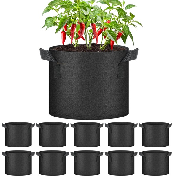 HealSmart 5 Gallon 10 Pack Plant Grow Bags, Tomoato Planter Pots with Handles, Aeration Nonwoven Fabric, Heavy Duty Gardening Planter for Vegetable, Herbs and Flowers, Black