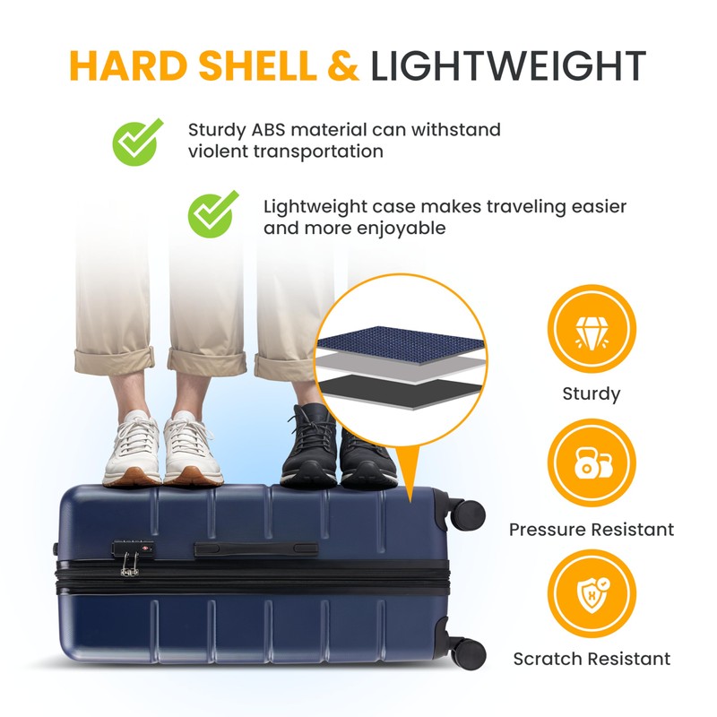 - Durable & Lightweight: This carry on luggage made of fine ABS exterior material that makes it durable and scratch resistant, ensures that our hard-shell suitcases remain reliable as you travel, keeping it beautiful trip after trip