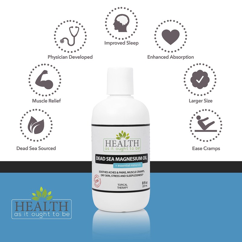 Health As It Ought To Be Health As It Ought To Be Dead Sea Magnesium Oil + Essential Minerals Supplement | Physician Formulated Calming, Soothes Aches, Pains, Cramps, Sleeplessness | 8 Ounce