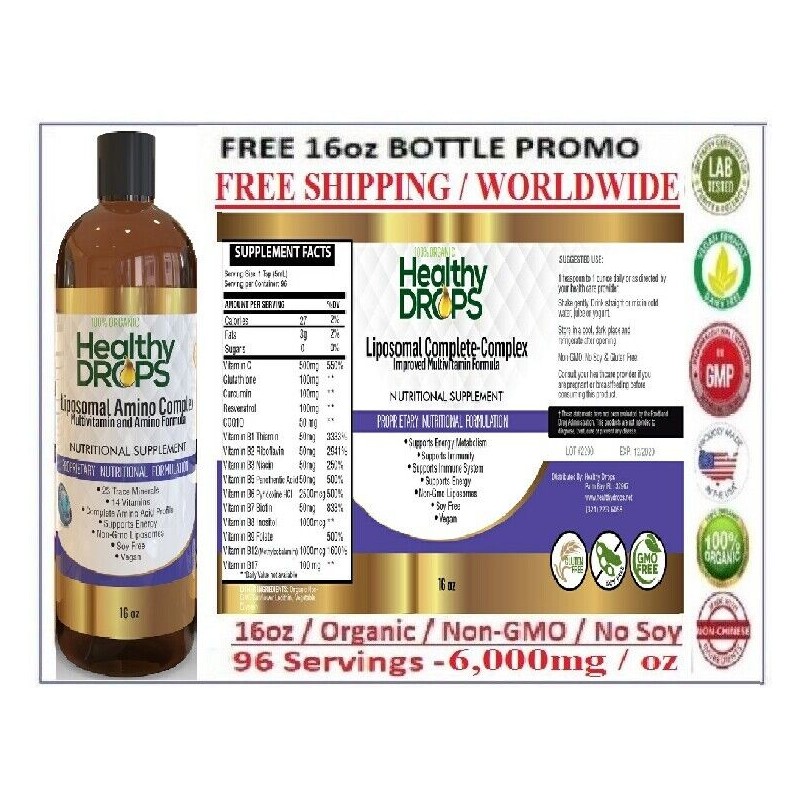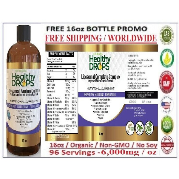 Health Drop LIPOSOMAL Multi Vitamins COMPLETE COMPLEX PLUS 100% ORGANIC BOTTLE 16oz 12/2026