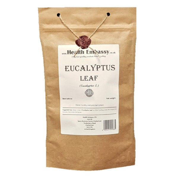 Infusion: steep 1 tsp of Eucalyptus Leaf Health Embassy in 250 ml boiling water for around 10 minutes, then strain the leaves from the infusion.