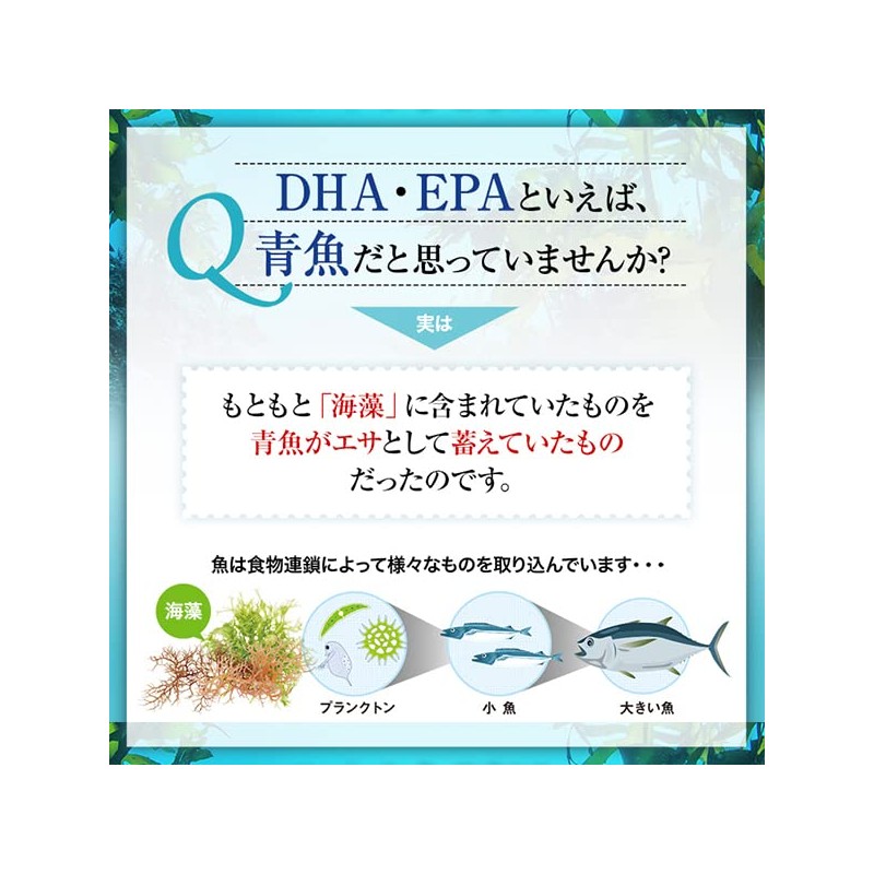 - (Seaweed grown in a clean environment) Uses seaweed containing highly concentrated DHA and EPA carefully selected from over 2,000 varieties. Unlike those derived from bluefish, we use seaweed grown in an environment without the risk of marine pollution, so they are extremely pure DHA and EPA