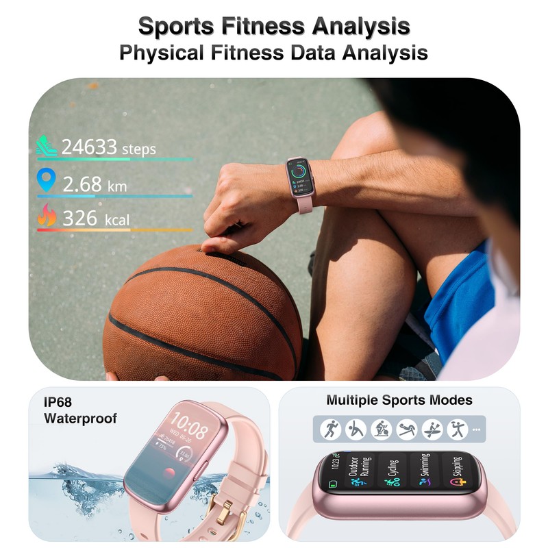 - đâăMultiple Sports Modes & Activity MonitoringăThis smartwatch offers a wide range of sports modes, including running, swimming, basketball, football, and more, covering all your favorite activities. As your perfect workout partner, it accurately tracks calories burned, steps taken, distance traveled, and real-time speed. Set personalized fitness goals to boost your workouts and achieve better results more efficiently.