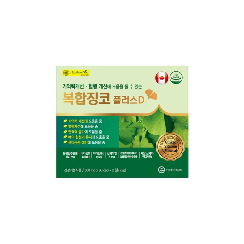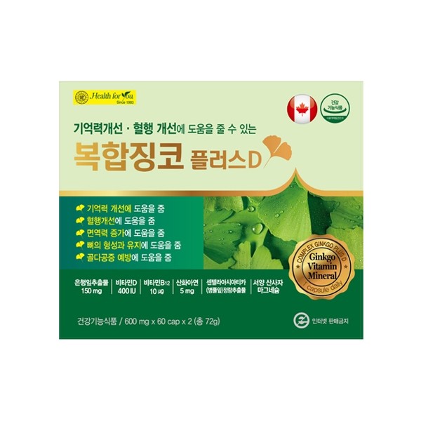Health For You Complex Ginkgo Plus D 2 Units / 헬스포유 복합징코 플러스D (600mg x 60캡슐 x 2개)