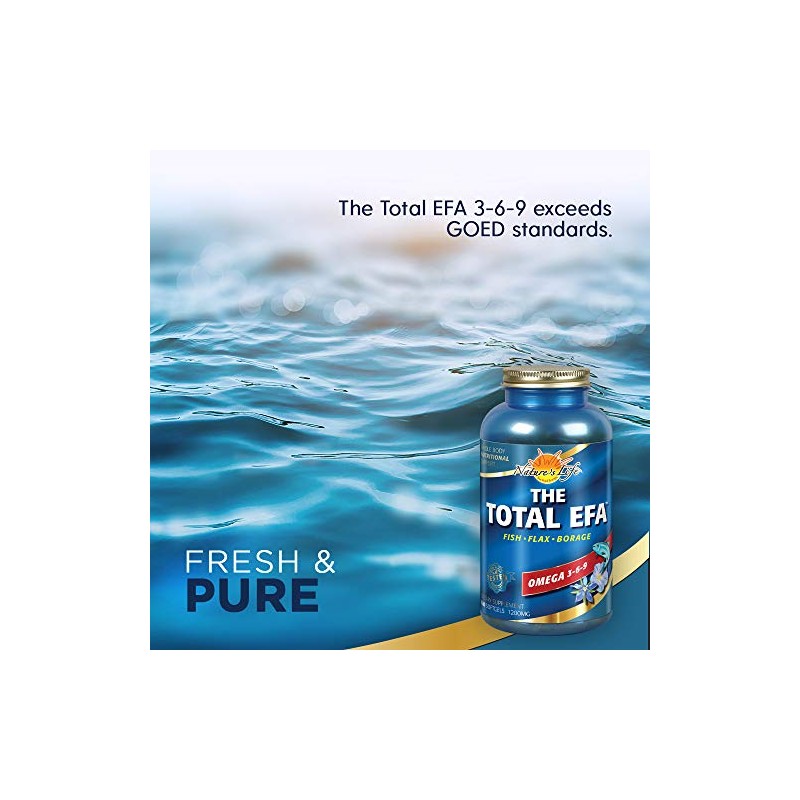 The total efa & trade; is the original omega 3,6 and 9 blend of essential fatty acids from organic flax, fish and organic borage oils. each serving of the total efa & trade; contains only oils most potent in efas and no filler oils. our oils are also blended at the ideal proportions of omega-3 and 6 to help the body achieve a healthy balance of these important fats. The Total EFA Maximum Omega 3-6-9 180 Softge Product Description The Total EFA Maximum Potency supplies a daily amount of essential fatty acids (EFAs) in a well-balanced ratio of omega-3-6 and 9. The Total EFA Maximum Potency provides the additional health benefits of a super potent fish oil concentrate purified by molecular distillation.