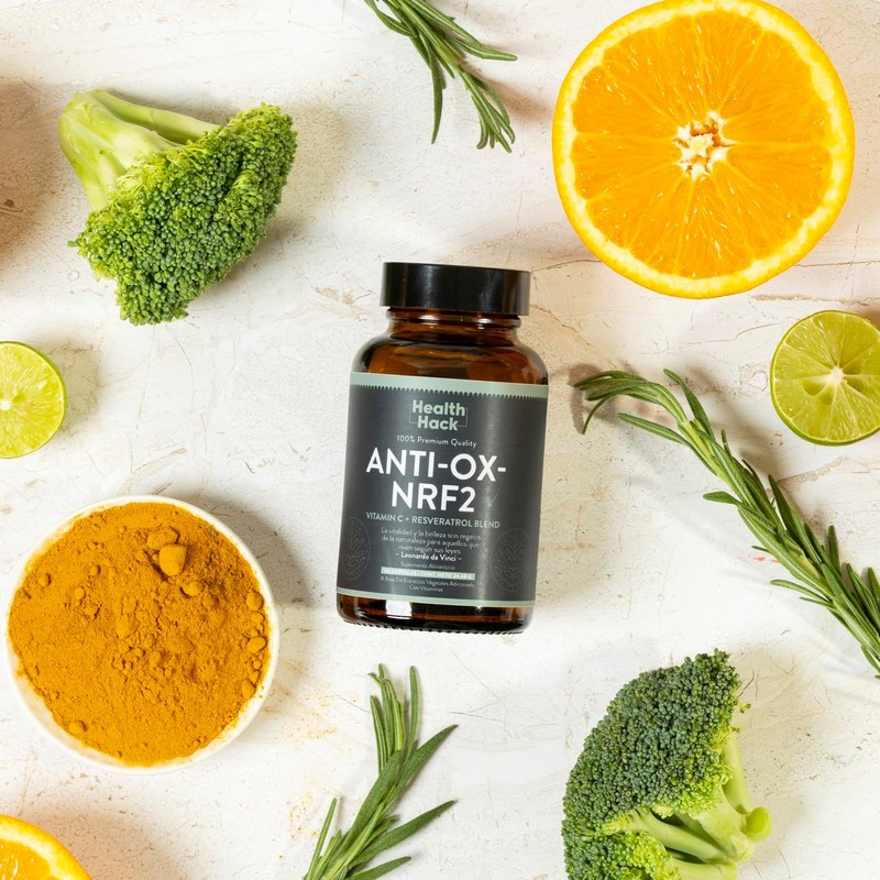 Experience the unique synergy of Anti-Ox-NRF2, which combines ingredients like resveratrol, broccoli flower bud extract, and rosemary extract, designed to maximize NRF2 activation. This innovative mechanism helps stimulate your internal antioxidant defenses, significantly differentiating us from other products on the market.