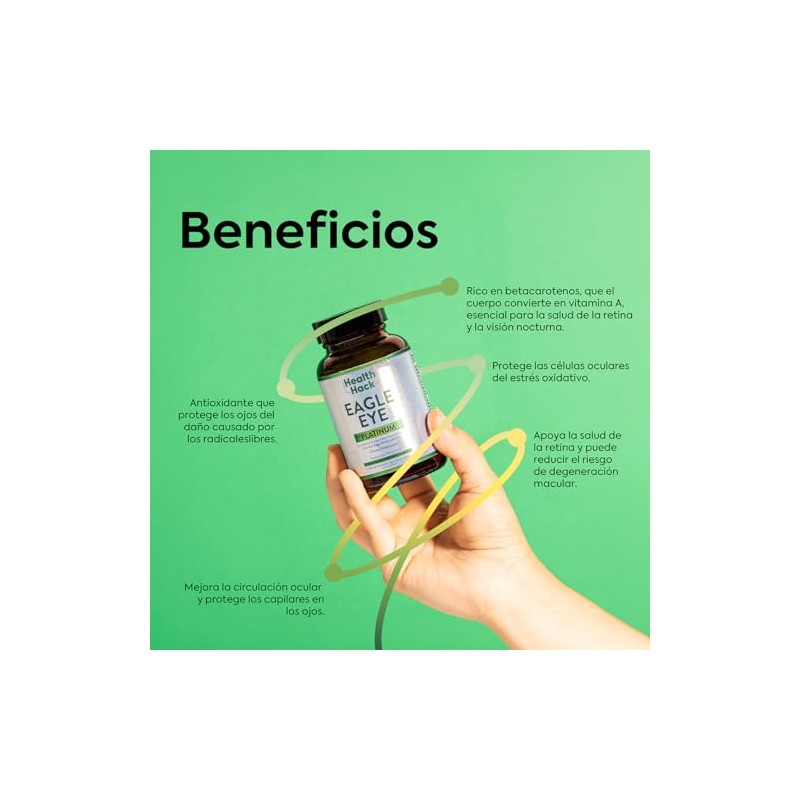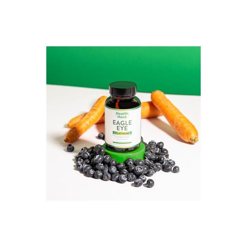 🌟 ⭐ Health Hack Eagle Eye Platinum | Apoya la Visión y Salud Ocular | Polvo de Zanahoria y Extracto de Arándano | Formulado con Zinc, Vitamina E, Vitamina C, Omega-3 y Luteína | Protección Contra Daño Oxidativo ⭐ 🌟