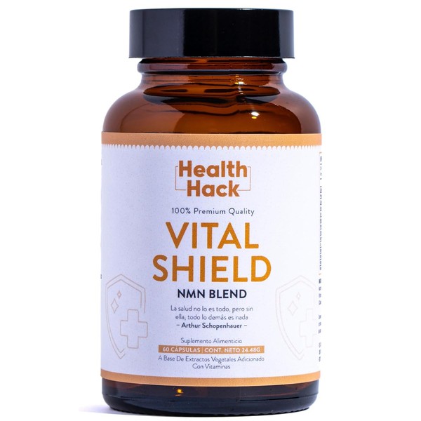 Health Hack Vital Shield NMN Blend | Mejora Tus Defensas de Forma Natural | NMN, Vitamina C, Quercetina, Zinc, Vitaminas B6, B9, B12 y D3 | Fortalecimiento y Protección Corporal