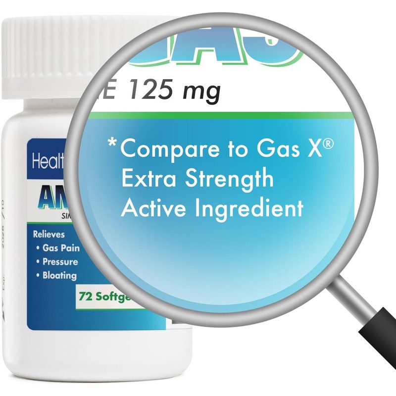 - HealthA2Z Simethicone 125mg softgels help to relieve symptoms of extra gas such as belching, bloating, and feelings of pressure/discomfort in the stomach/gut.