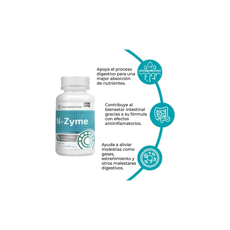 Experimenta un bienestar digestivo superior con las Enzimas Digestivas de HEALTHADDICTION en versión individual de 60 cápsulas de 400 mg cada una. Este suplemento alimenticio, especialmente formulado, incluye una combinación precisa de enzimas digestivas y papaína efectiva para optimizar la absorción de nutrientes y proporcionar un confort gastrointestinal sostenido, siendo el aliado perfecto para quienes buscan mejorar su digestión de manera significativa.