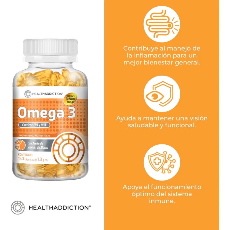 HEALTHADDICTION - Omega 3 Premium sin Sabor a Pescado, 150 Cápsulas de 1.2g c/u, Con Alto Contenido de EPA y DHA - Aceite de Pescado de Calidad