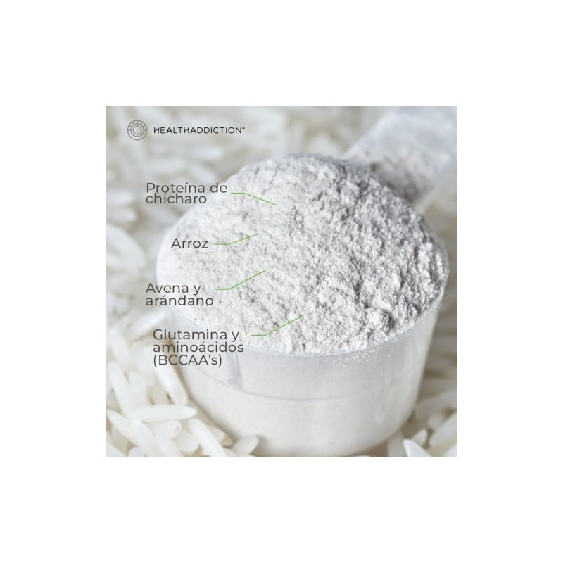 HEALTHADDICTION - Protena Vegana con Sabor a Vainilla, Frmula Potenciada con Glutamina y Aminocidos, 24g de Protena y 2.5g de Glutamina por Porcin -