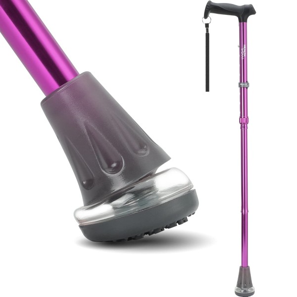 - 衝撃吸収:Healthbazaarの特許取得済み衝撃吸収システムは、靴のエアクッション技術を導入し、各ステップの衝撃を吸収して手と手首の疲労を効果的に減らすことができます。 この新しく設計された杖の先端には、高品質の蛍光材料が拡張されています。 チップは夜間にそれ自体を照らし、夜間歩行の安全性を大いに保証します。