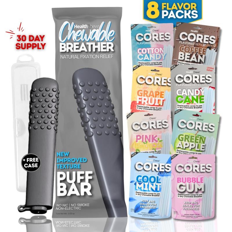- üåø HealthChews Flex & Puff + FREE Case Discover the HealthChews Flex & Puff, a reusable aromatherapy breather stick. This non-edible tool aids in wellness and habit relief. Perfect for those seeking a unique approach to stress management. The package includes a FREE case, enhancing its practicality. Key Features: ‚Ä¢ Reusable Design: Enjoy multiple uses without waste. ‚Ä¢ Aromatherapy Benefits: Helps in creating a soothing environment. ‚Ä¢ Non-Edible Material: Safe for use but not for consumption. Ideal for anyone looking for an alternative to traditional methods of stress relief. The HealthChews Flex & Puff combines functionality with a touch of innovation. Try it today and experience the difference! üåü