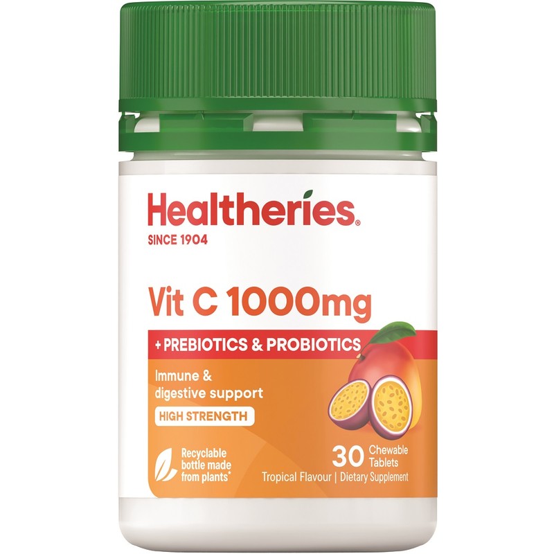 Healtheries Vit C 1000mg + Prebiotics & Probiotics Chewable Tablets 30 - Tropical