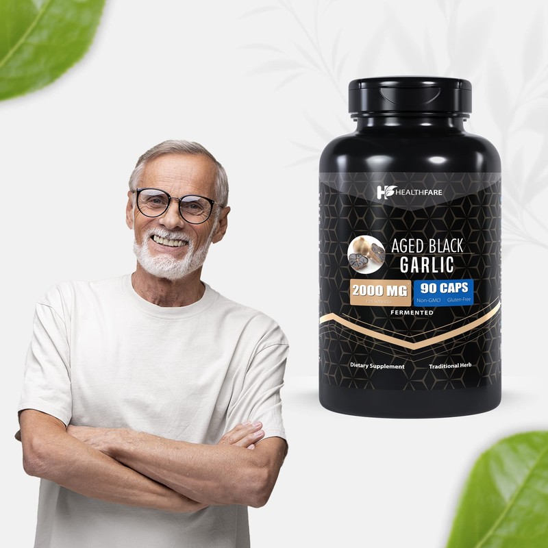 Healthfare Fermented Black Garlic Extract Dietary Supplement 2000mg | 90 Caps | Maximum Strength | Non-GMO | Gluten Free